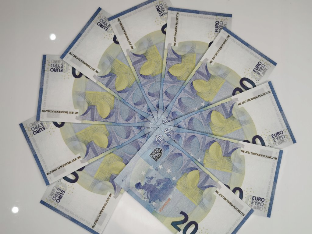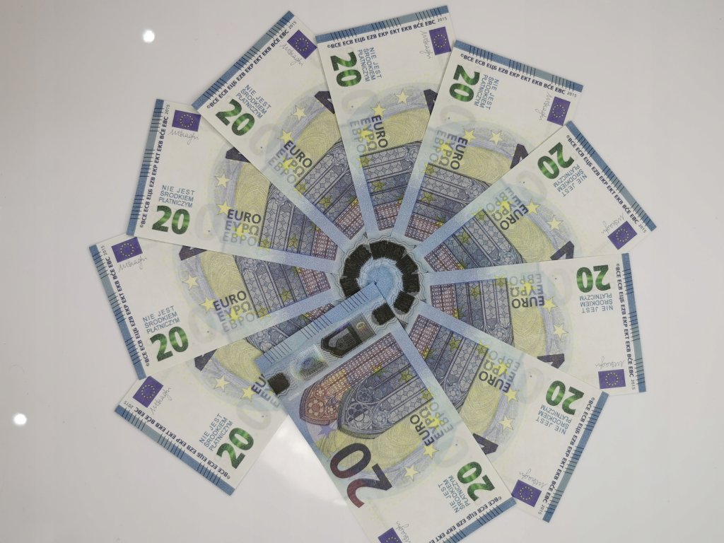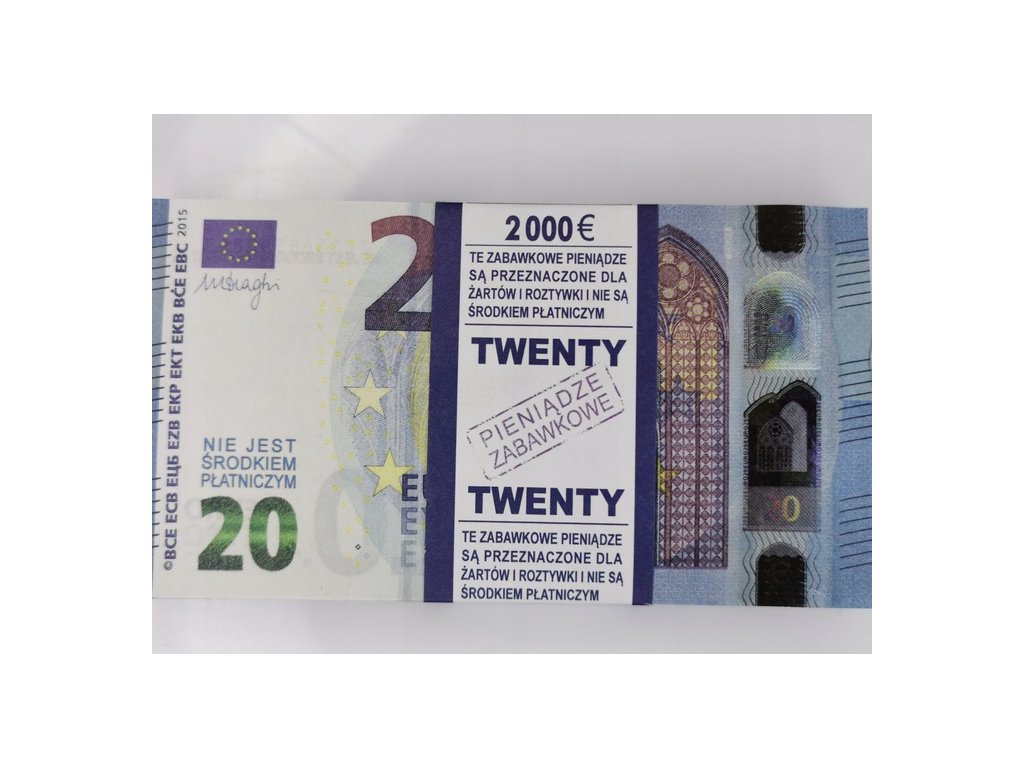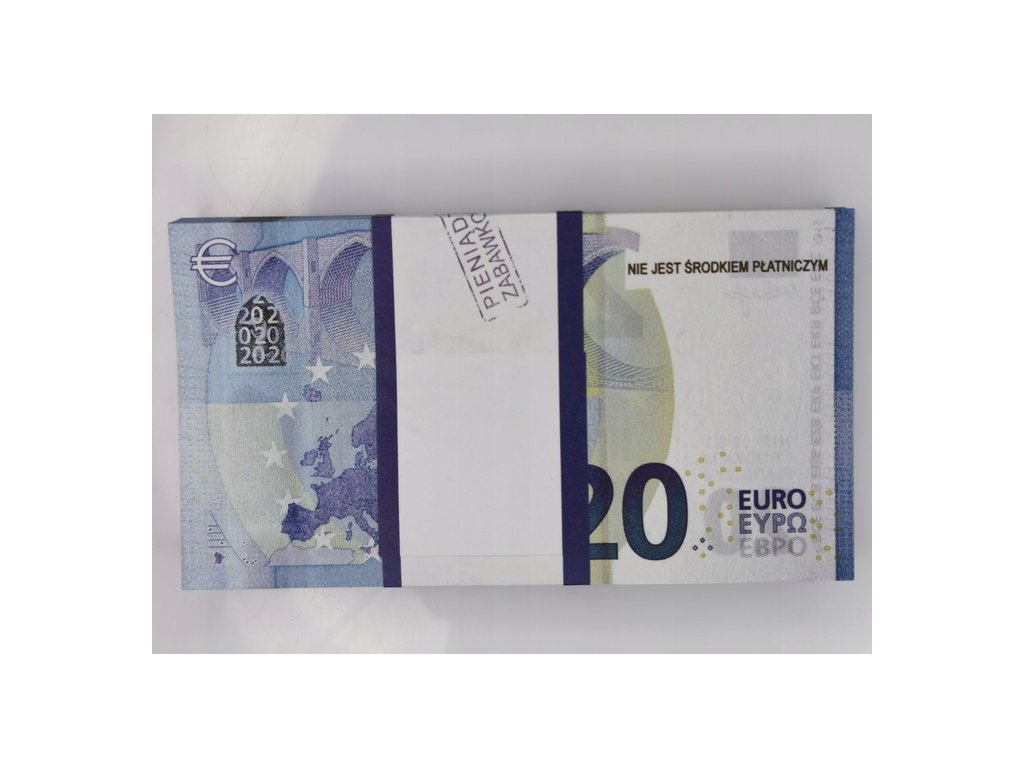 Dětské bankovky 20 eur, velikost 133 mm x 75 mm, počet kusů v balení 100, hmotnost 0,2 kg.