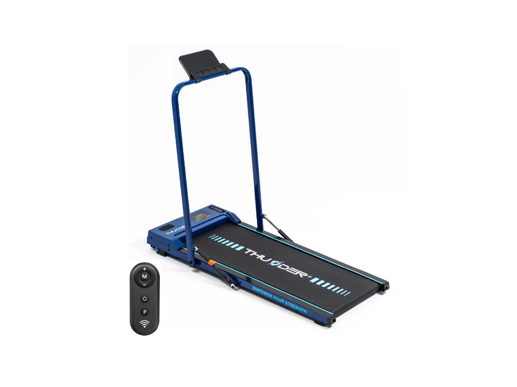 Motor o výkonu 2 HP nabízí rozsah rychlosti od 1 do 8 km/h, což je ideální jak pro klidnou chůzi, tak pro svižnější běh. LED displej přehledně zobrazuje čas, rychlost, vzdálenost a spálené kalorie. Bluetooth připojení a vestavěné reproduktory umožňují poslouchat hudbu nebo využívat tréninkové aplikace. Součástí je také dálkové ovládání, díky kterému můžete měnit tempo bez nutnosti zastavovat.