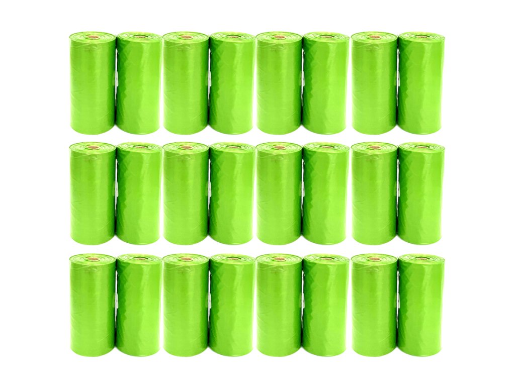 Biologicky rozložitelné sáčky na psí exkrementy, počet kusů: 360, obsah balení: 24 rolí, rozměry sáčku: 32 x 22 cm.