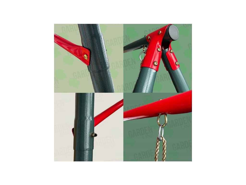 Rám je opatřen práškovým lakováním, které chrání kov před korozí a vlivy počasí. Houpačka je proto vhodná pro dlouhodobé venkovní používání během celé sezóny.