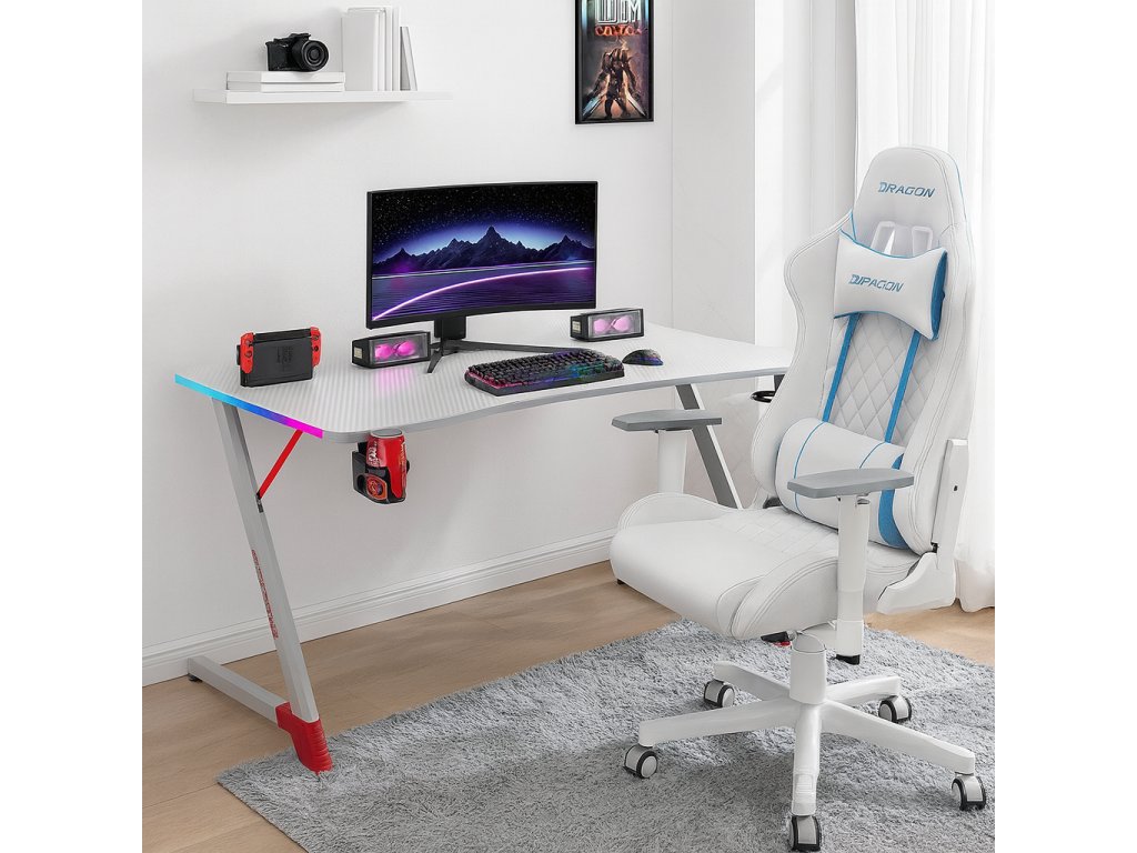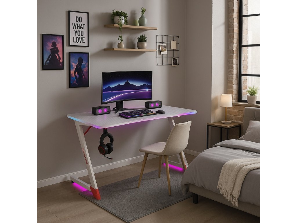 Herní stůl s RGB osvětlením bílý 140 cm BG01