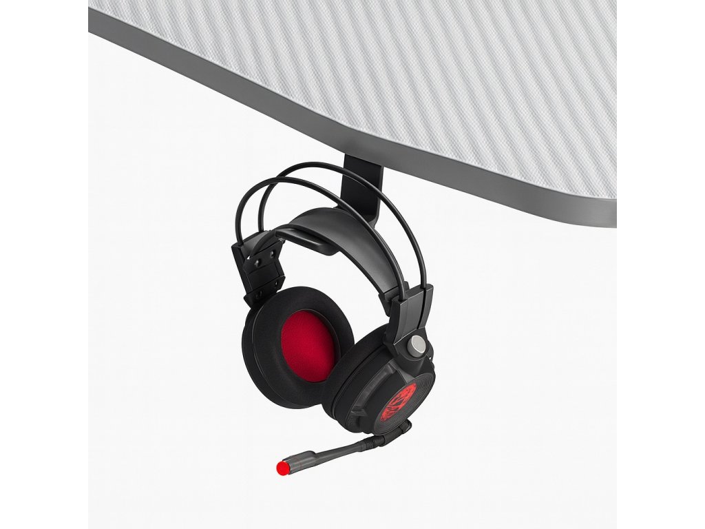 RGB LED pásky po stranách desky vytvoří jedinečnou atmosféru při hraní i práci. Osvětlení lze připojit přes USB a přizpůsobit barvu či efekt podle vaší nálady. Praktické průchodky na kabely udrží váš prostor uklizený, zatímco držák na nápoje a háček na sluchátka zajistí maximální pohodlí.