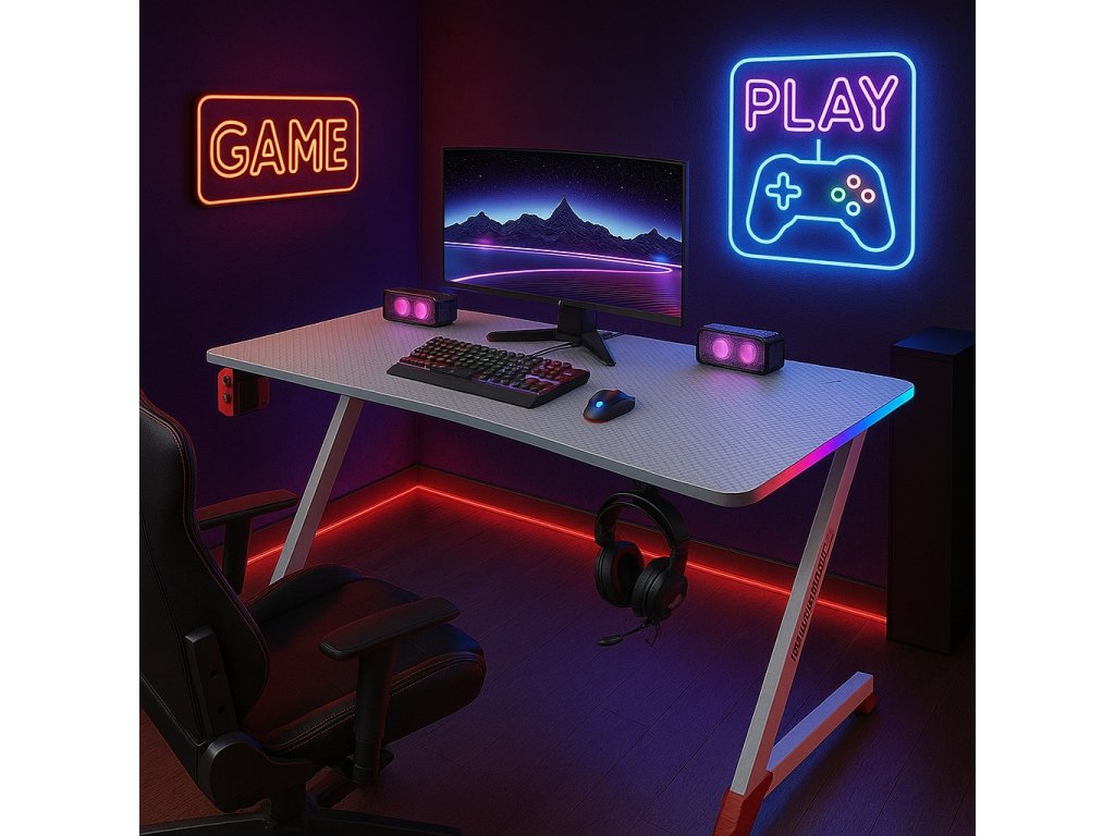 Hledáte stůl, který propojí herní atmosféru s praktickým využitím při práci či studiu? Herní počítačový stůl s RGB LED podsvícením se stane dominantou vašeho pokoje. Nabízí dostatek prostoru, moderní design a chytré doplňky, díky nimž budete mít vše potřebné vždy po ruce.