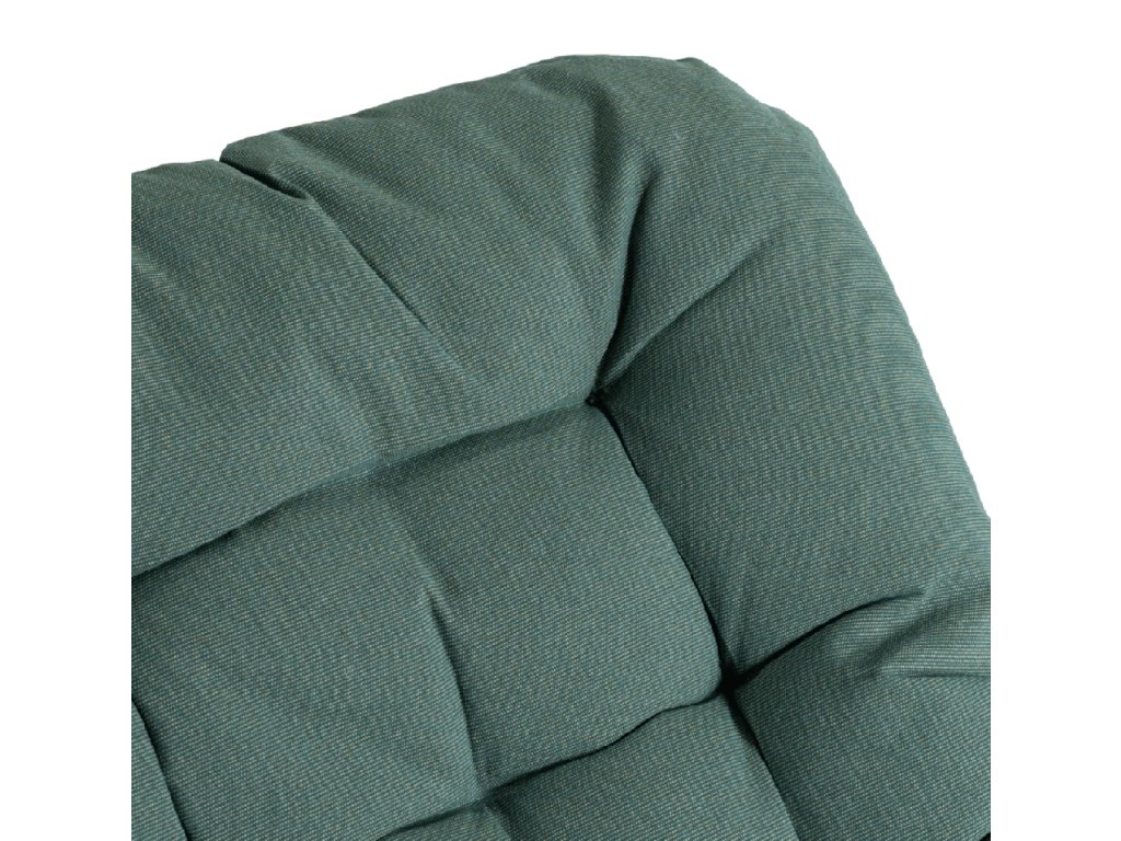 Zelené houpací křeslo Aurora má pevnou ocelovou konstrukci s černým rámem, který je ošetřen práškovým lakováním proti korozi. Sedací část relaxačního křesla Aurora je potažena odolnou, nepromokavou látkou v elegantní zelené barvě, která odolá dešti i rozlitým nápojům.