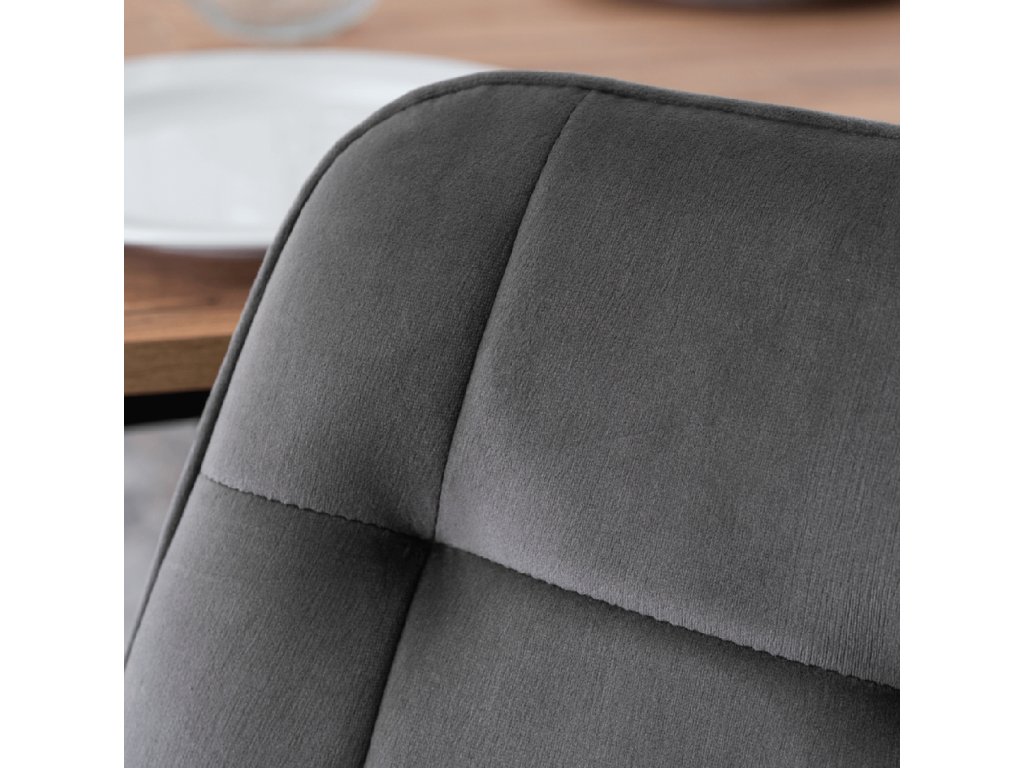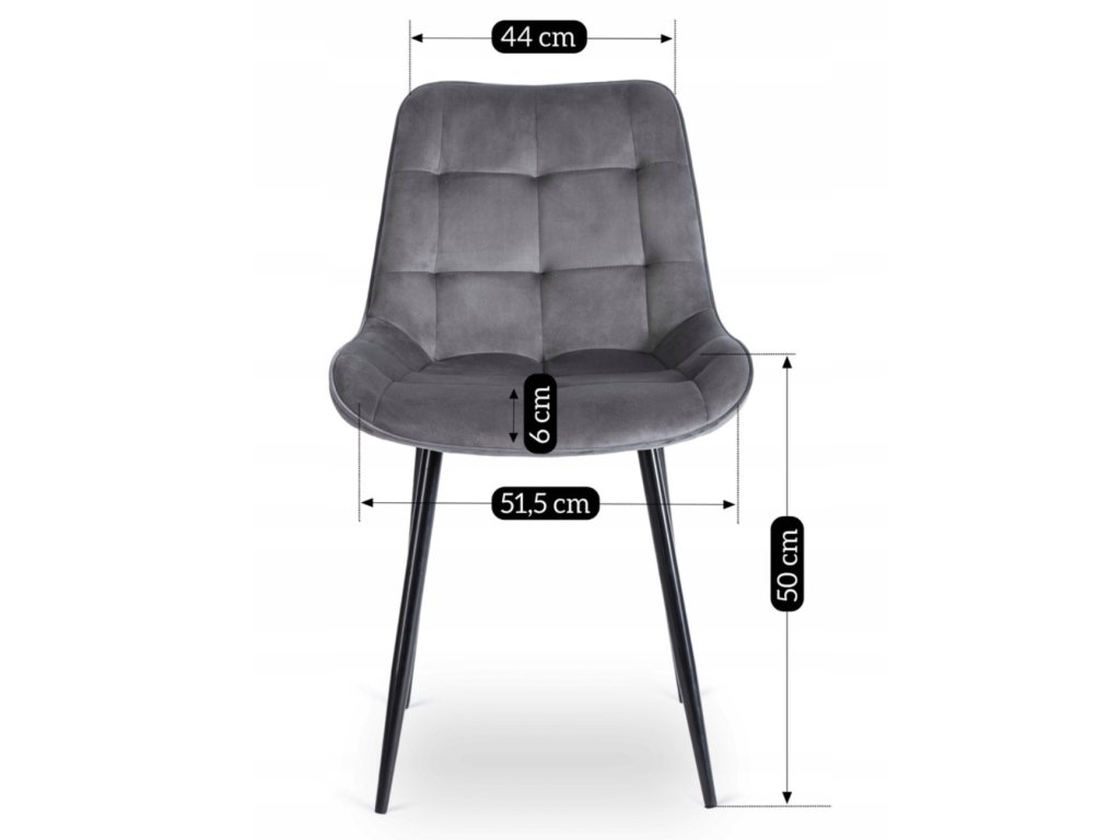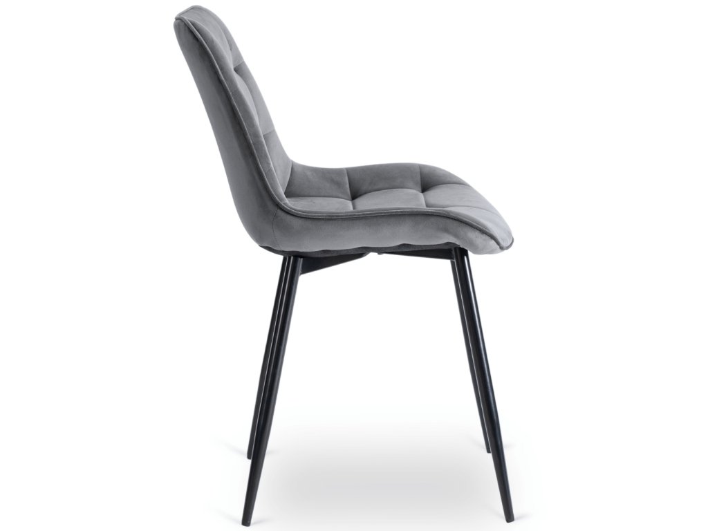 Čtyři židle Chris patří mezi mimořádně pohodlné modely. Široký sedák, ergonomicky tvarované opěradlo a měkké sametové čalounění poskytují komfort i při delším sezení. Šedý samet působí elegantně, ale zároveň prakticky pro každodenní používání.
