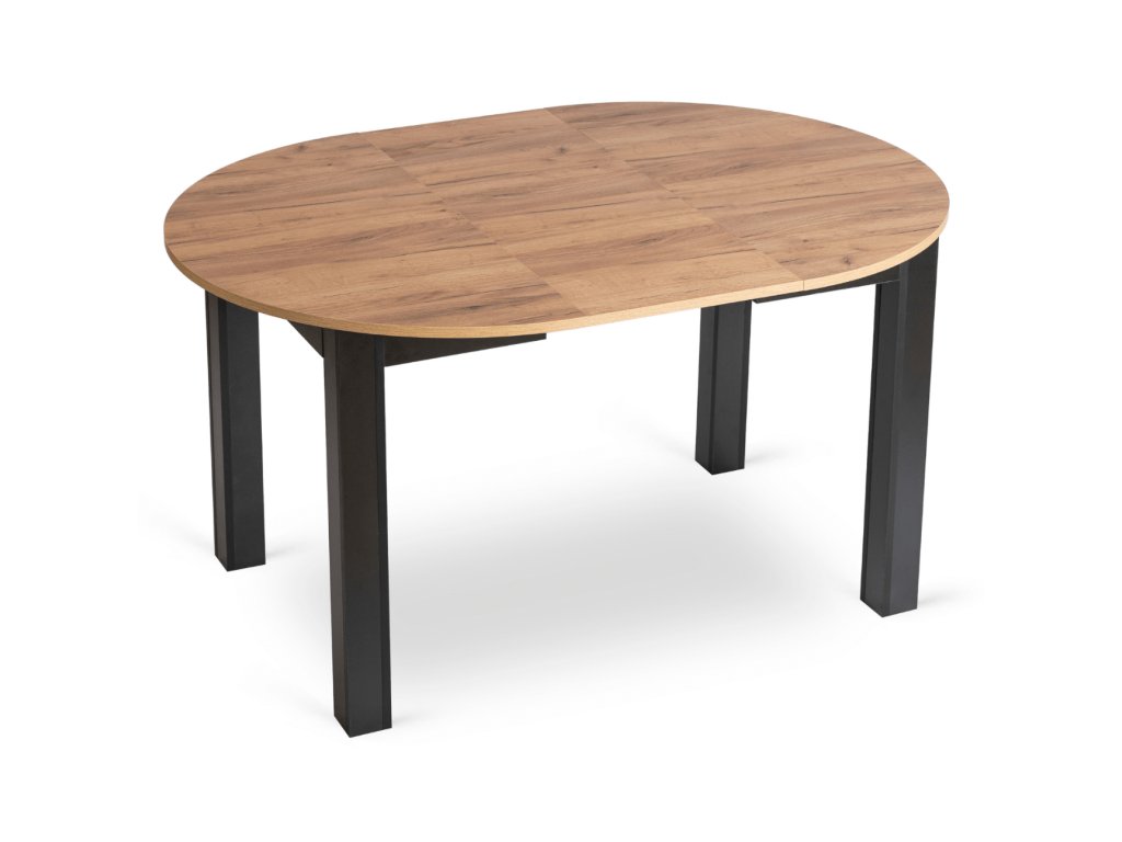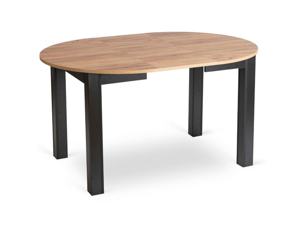 Laminovaná deska v dekoru řemeslného dubu je odolná, snadno se udržuje a zvládne každodenní provoz. Černá podnož dodává stolu moderní kontrast a potřebnou stabilitu.