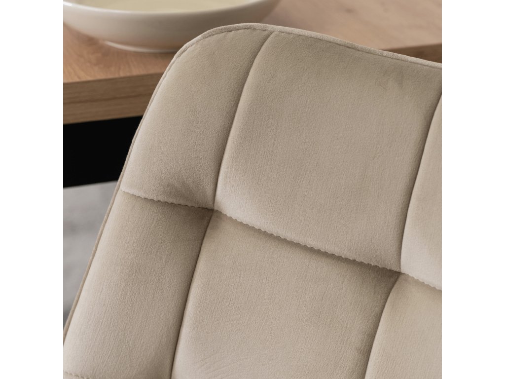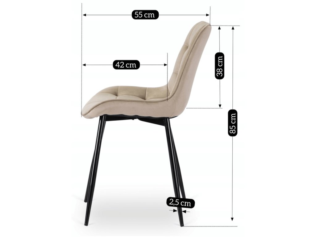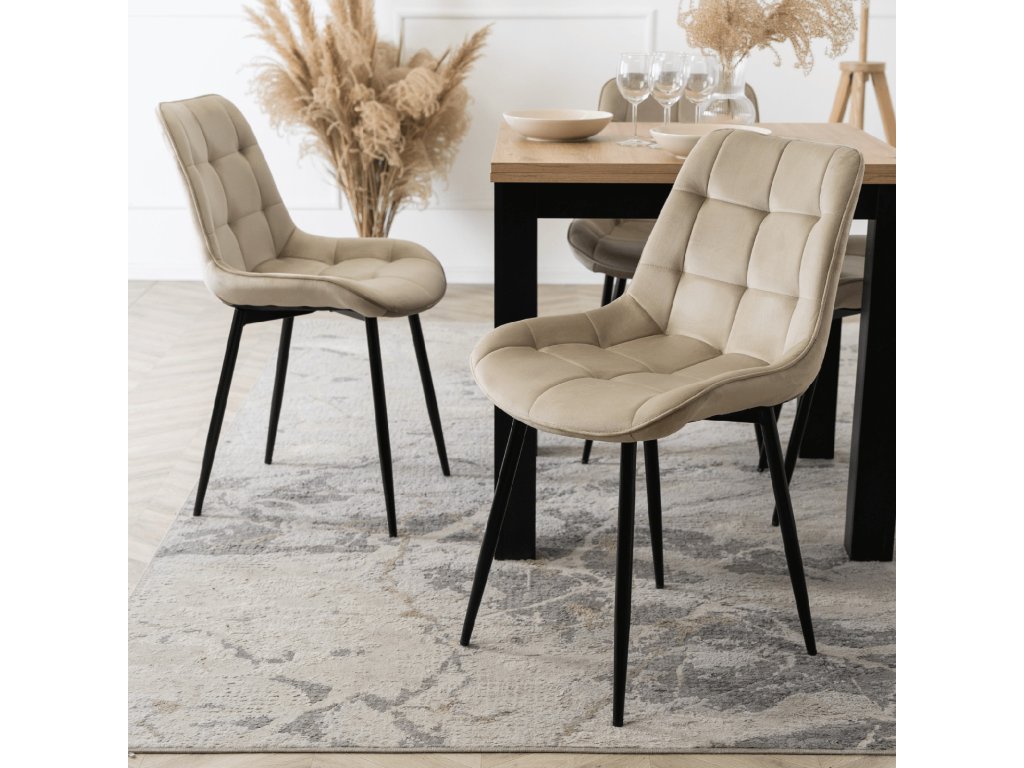 Čtyři židle Chris s jemným čalouněním poskytují pohodlí při jídle, práci i delším sezení. Ergonomicky tvarované opěradlo podporuje přirozený posed a stabilní kovová konstrukce zajišťuje jistotu při běžném používání. Celek působí vyváženě a funkčně, bez rušivých prvků.