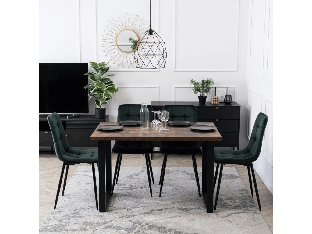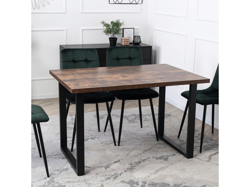 Jídelní stůl Vettel, délka: 120 cm, výška: 74,5 cm, tloušťka desky: 3,5 cm, materiál: MDF, kov, motiv: dub rustikální, barva: černá