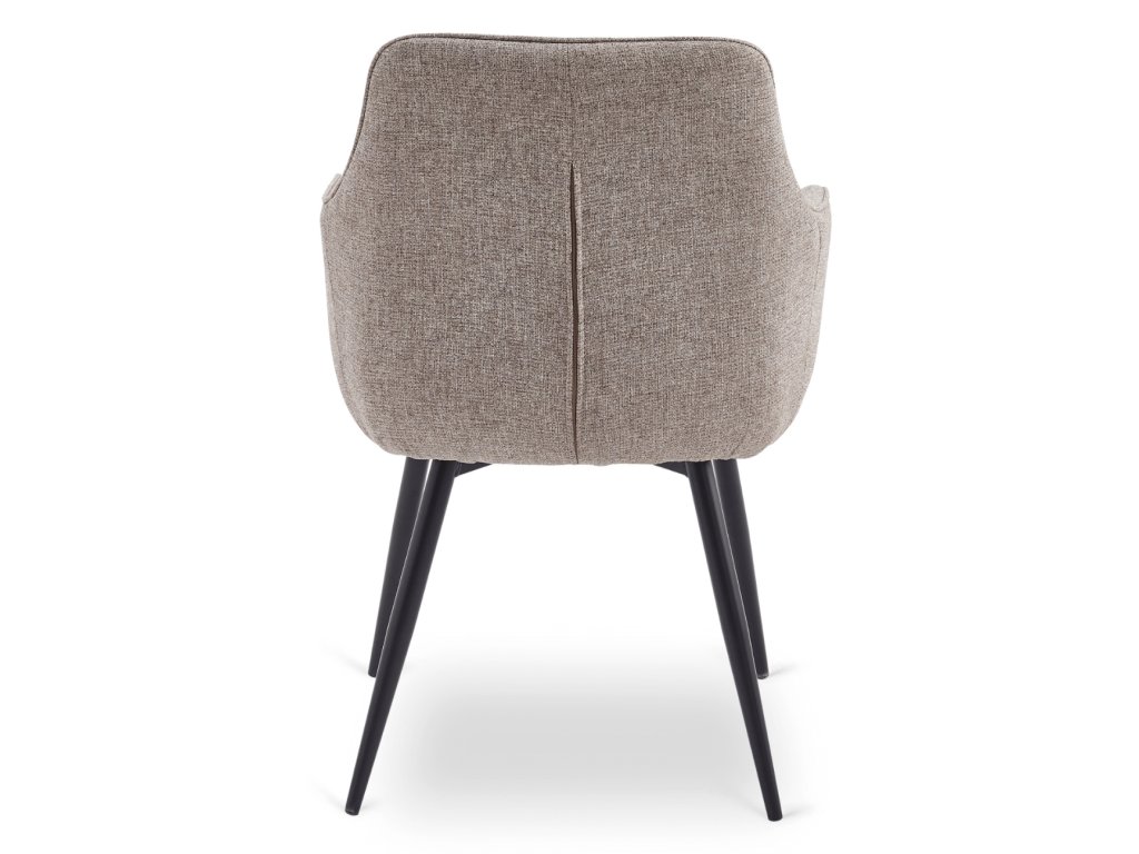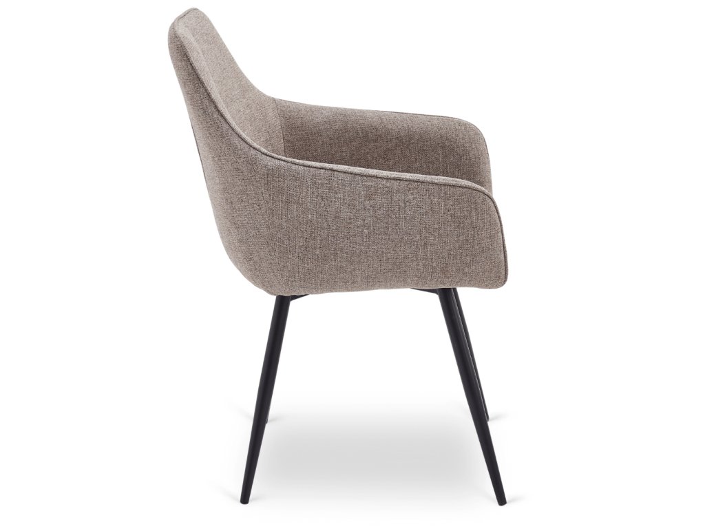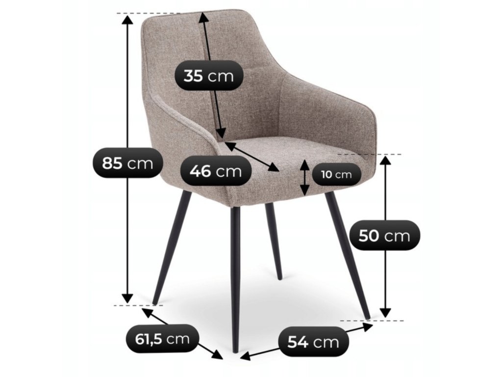 Židle je čalouněná kvalitní látkou příjemnou na dotek, která je odolná vůči každodennímu používání. Světle hnědý odstín přináší do interiéru teplo a harmonii, zatímco pevná kovová konstrukce v černé barvě zaručuje stabilitu a bezpečnost. Měkké 10 cm tlusté sedadlo se zabudovanými pružinami poskytuje komfort i při delším sezení.