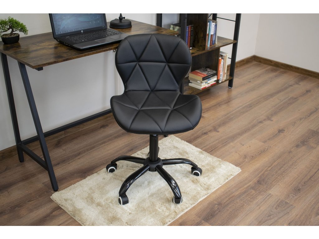 Židle je vyrobena z eko kůže, která se snadno čistí a zároveň vypadá elegantně. Pevná 5-ramenná základna z kovu se stabilními kolečky umožňuje plynulý pohyb bez poškrábání podlahy. Výška se nastavuje jednoduše pomocí spodní páky pod sedákem, takže si ji přizpůsobíte přesně podle potřeby.