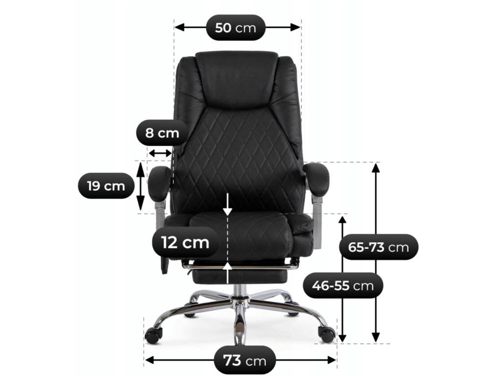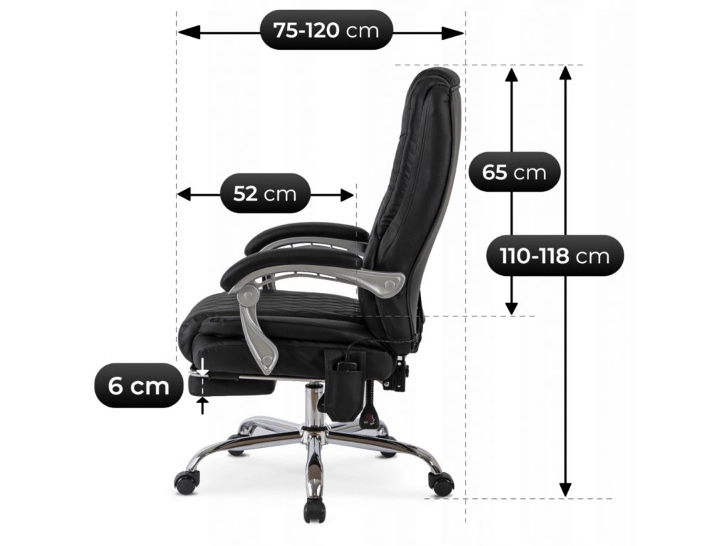 Víceblokový mechanizmus umožňuje nastavení výšky sedáku i sklonu opěradla podle výšky postavy a pracovních návyků. Polohovatelná konstrukce v kombinaci s výsuvnou opěrkou nohou umožňuje nejen práci u stolu, ale také krátký odpočinek během pracovních přestávek. Masážní funkce s ohřevem pomáhá uvolnit svaly v oblasti páteře a přispívá ke snížení napětí při dlouhém sezení.
