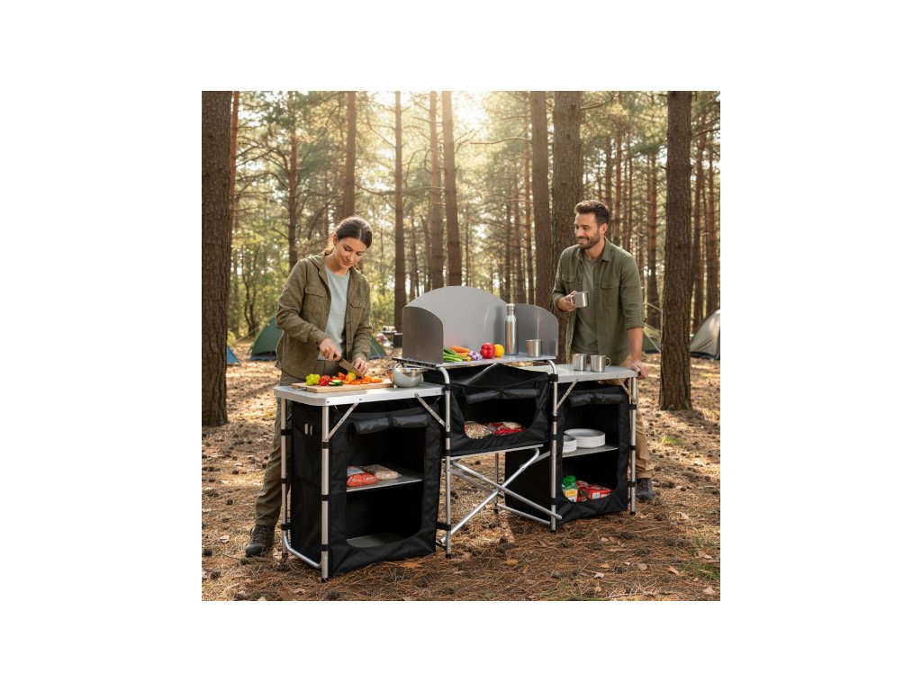 Chcete vařit v přírodě stejně pohodlně jako doma? Kempingová kuchyně vytváří stabilní, přehledné a hygienické pracovní místo všude tam, kde vaříte mimo domov. Ať už kempujete, cestujete karavanem, trávíte čas na chatě nebo vaříte na zahradě, vše máte uspořádané a po ruce.