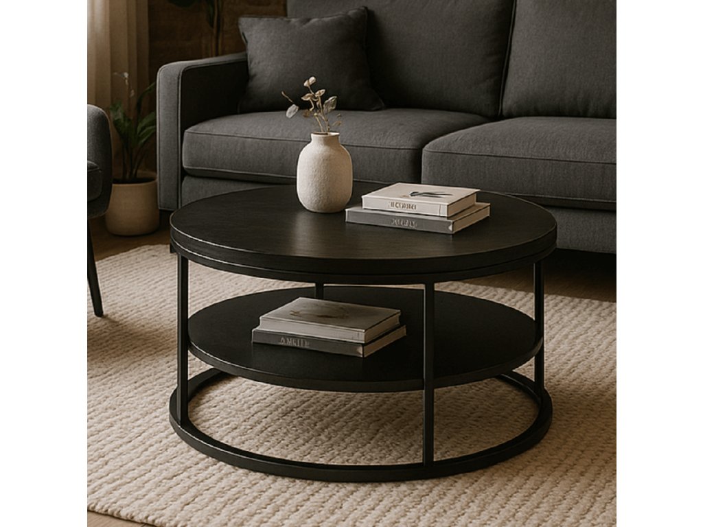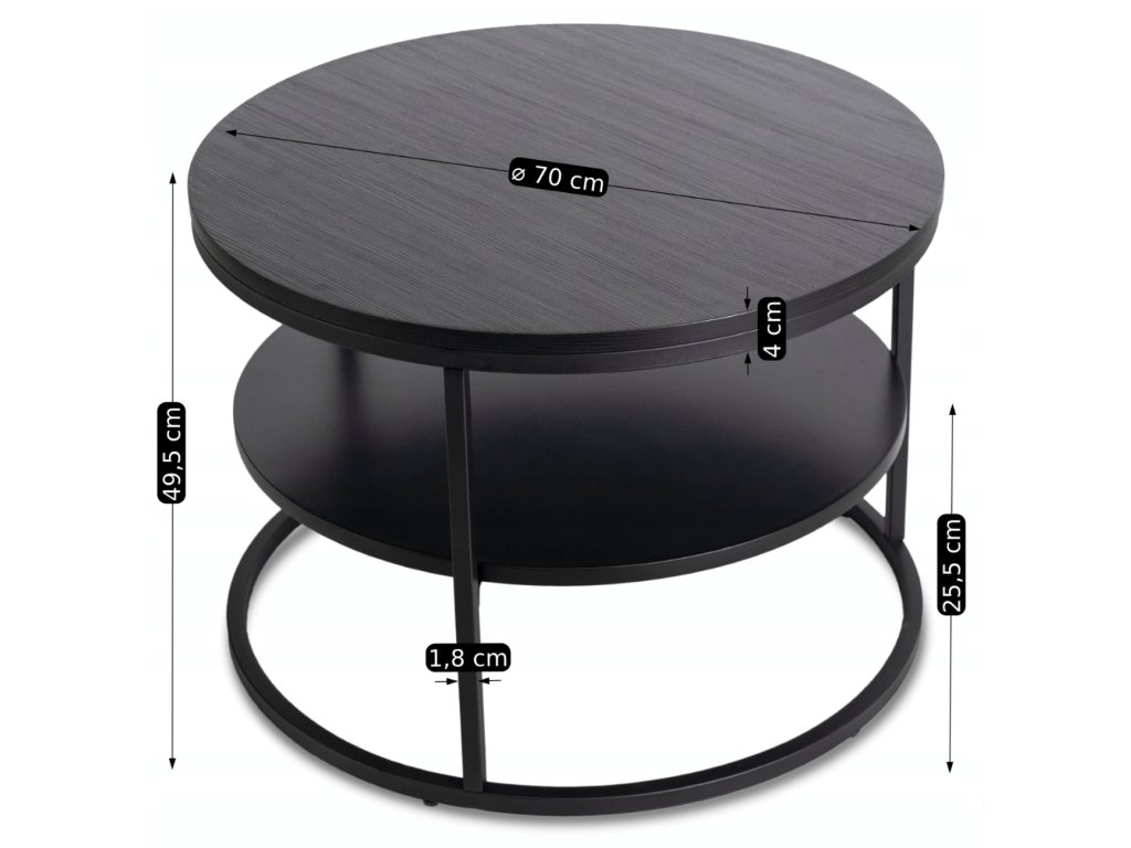 Stolík kombinuje pevnou kovovou konstrukci s černou MDF deskou. Kov poskytuje stabilitu a odolnost, MDF deska rovný a snadno udržovatelný povrch. Konstrukce zvládne běžné zatížení, od odkládání kávy až po dekorace, a je vhodná i pro domácnosti s dětmi.