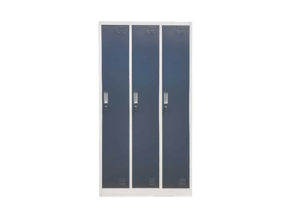 Kovová šatní skříň grafitová třídveřová 90 cm