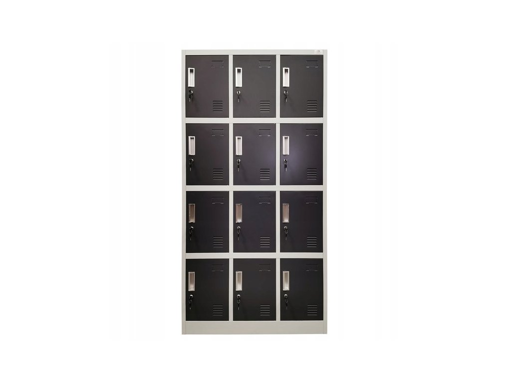 Díky dvanácti samostatným boxům je skříň ideální pro šatny ve firmách, školách, sportovních klubech i veřejných institucích. Univerzální design a kompaktní rozměry umožňují umístění i v menších prostorech.