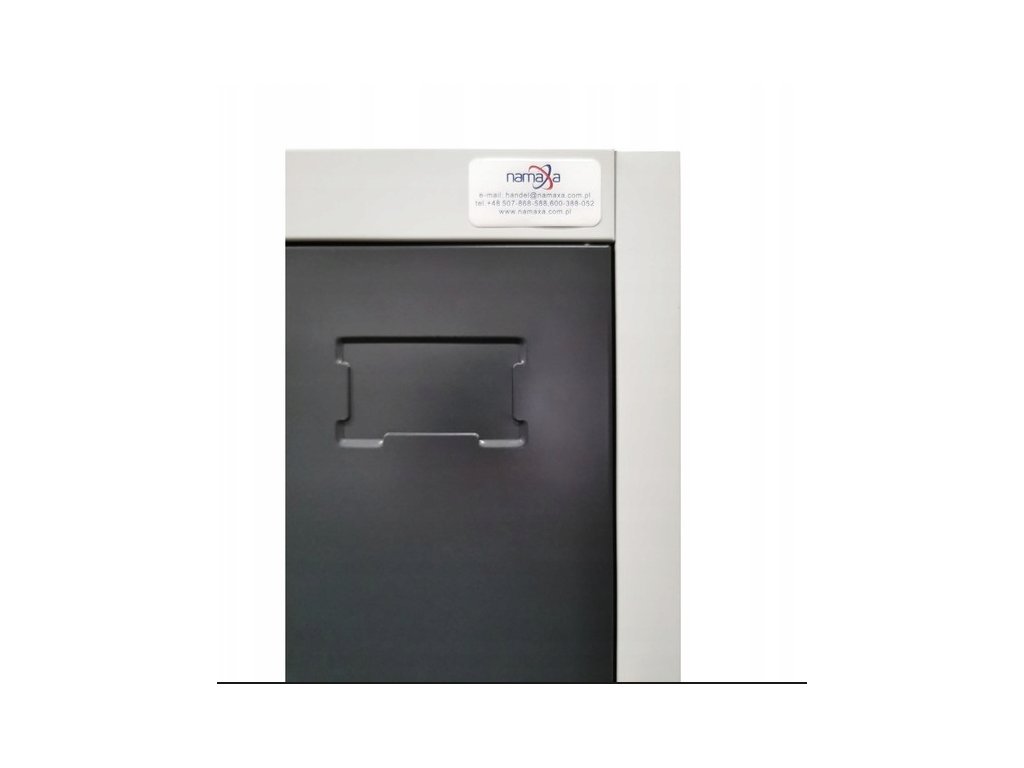 Skříň je vyrobena z pevného ocelového plechu o tloušťce 0,6 mm, který zaručuje stabilitu a odolnost při každodenním používání. Perforované dveře zajišťují přirozené větrání, což je důležité při ukládání oblečení i pracovních doplňků.