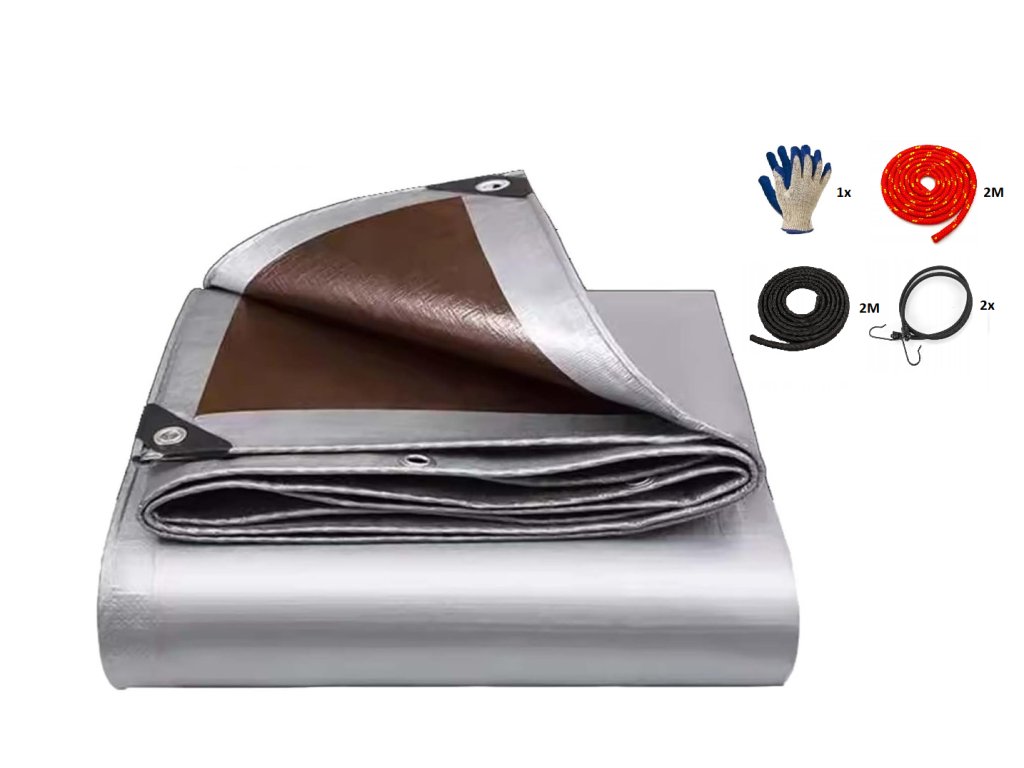KRYCÍ PLACHTA STŘÍBRNO - HNĚDÁ 3X4 M 210G/M2