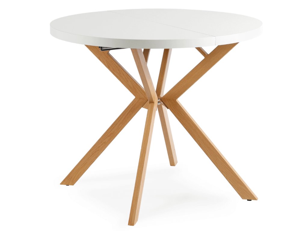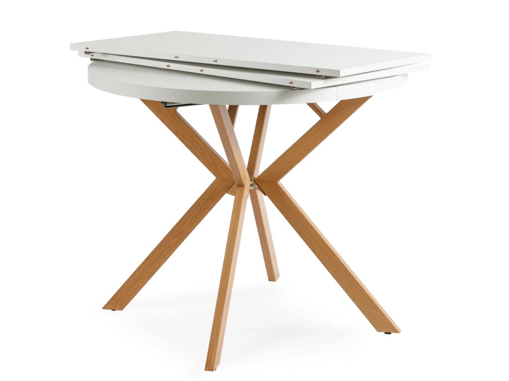 Jak funguje rozkládání kulatého rozkládacího jídelního stolu bílého 90 cm – 190 cm dub Lugo?