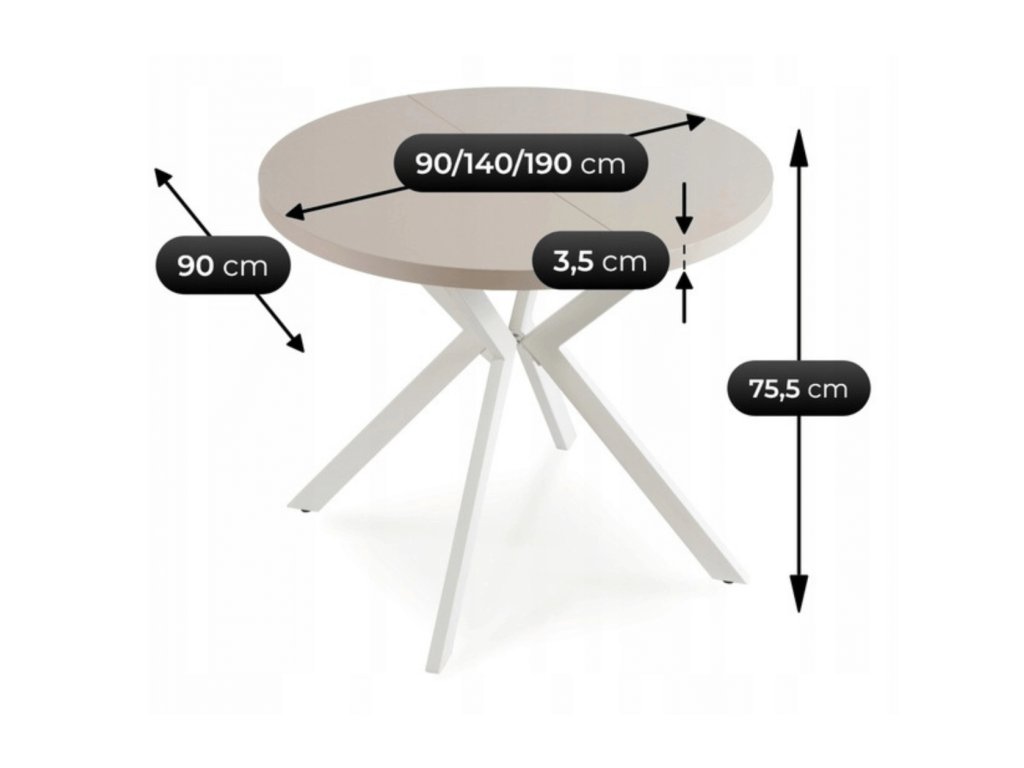 Kulatý rozkládací stůl bílý 90 – 190 cm kašmír Lugo