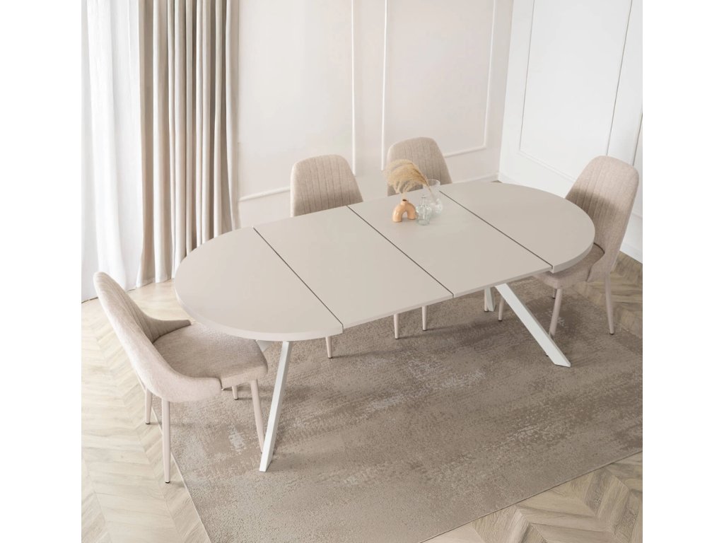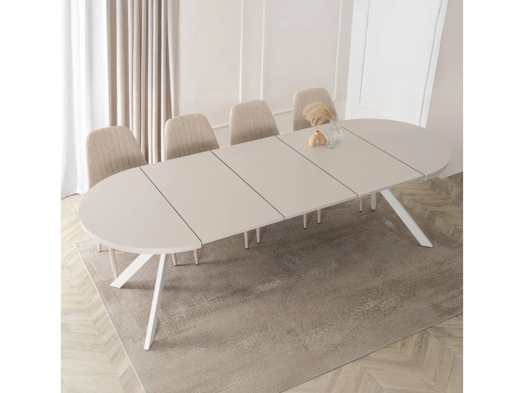 Kulatý rozkládací stůl Lukas bílý 100 - 250 cm kašmír