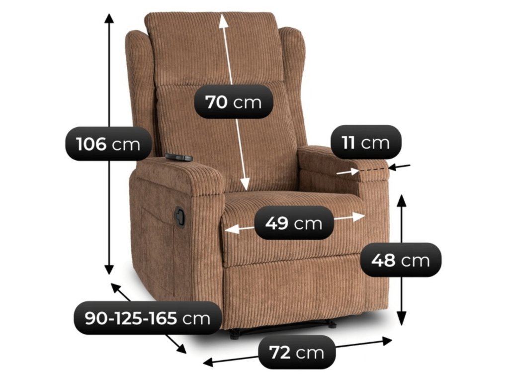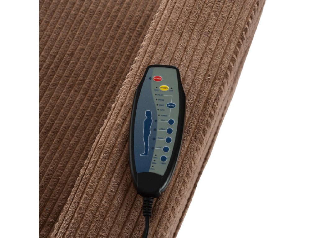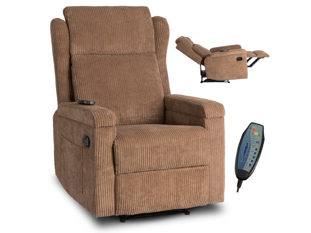 Díky masážní funkci si můžete dopřát uvolnění v oblasti nohou, stehen, boků i zad. Ovládání probíhá jednoduše přes dálkový ovladač, kde si zvolíte intenzitu i čas masáže podle potřeby. Praktické detaily jako otevíratelné loketní opěrky s úložným prostorem a nastavitelná opěrka nohou zvyšují komfort při každém použití.