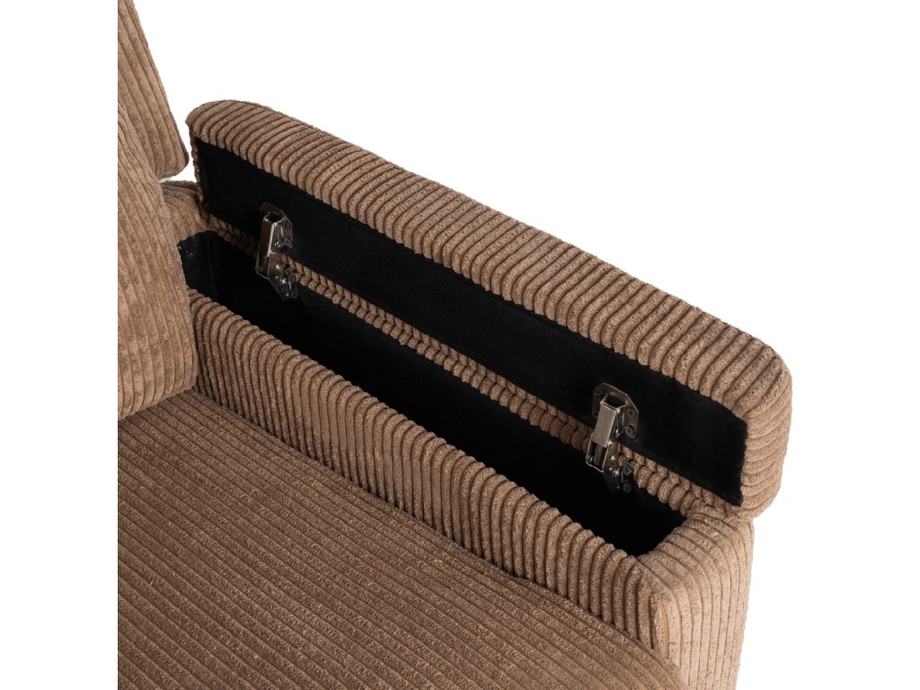 Čalounění z jemného manšestru s typickou žebrovanou strukturou je nejen příjemné na dotek, ale také odolné vůči každodennímu používání. Hnědý odstín dodává moderní eleganci a snadno zapadne do různě laděných interiérů. Kovová konstrukce poskytuje stabilitu a pevnost, což zaručuje bezpečné a pohodlné používání.