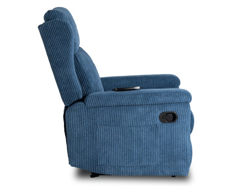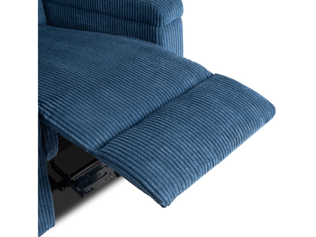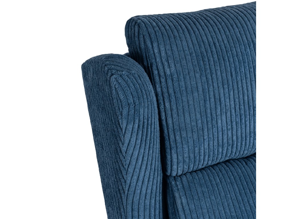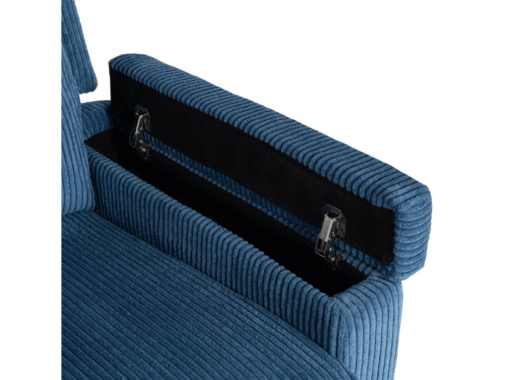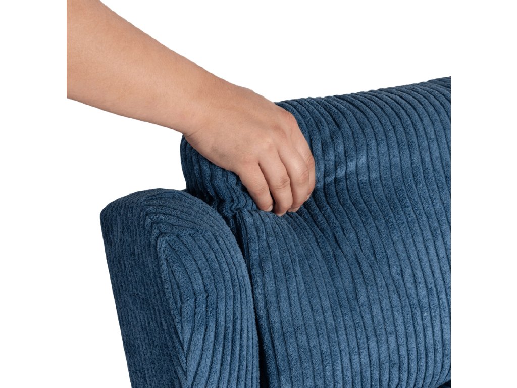 Čalounění z jemného manšestru s typickou žebrovanou strukturou je nejen příjemné na dotek, ale také odolné vůči každodennímu používání. Modrý odstín přináší moderní eleganci a snadno zapadne do různě laděných interiérů. Kovová konstrukce poskytuje stabilitu a pevnost, což zaručuje bezpečné a pohodlné používání.