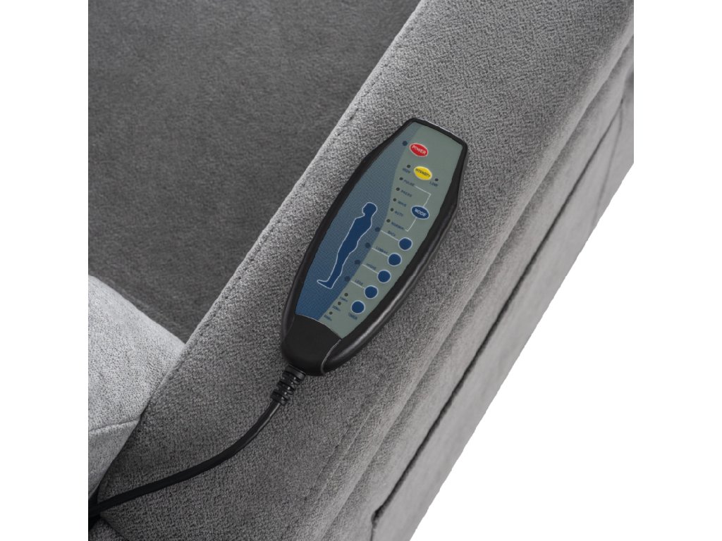 Díky masážní funkci si můžete dopřát uvolnění nohou, stehen, beder i zad. Ovládání je jednoduché přes dálkový ovladač, kde si nastavíte intenzitu i délku masáže podle potřeby. Praktické detaily, jako otevíratelné područky s úložným prostorem a nastavitelné opěrky nohou, zvyšují komfort při každém použití.