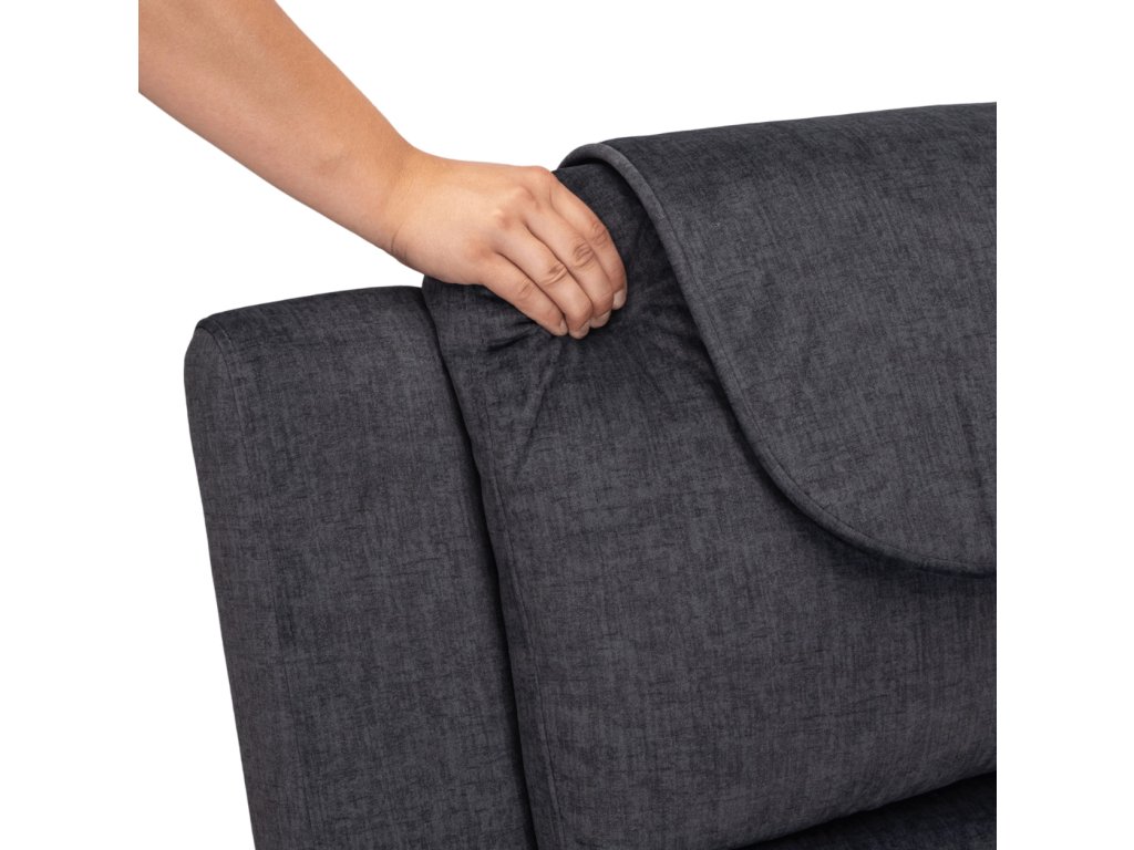 Křeslo je postaveno na pevné kovové konstrukci v černém provedení, která zajišťuje jistotu a stabilitu i při častém používání. Látkové čalounění v neutrální šedé barvě se snadno kombinuje s různými styly interiéru. Vysoké opěradlo, loketní opěrky a integrovaná opěrka hlavy podporují přirozenou polohu těla při sezení, relaxaci i krátkém odpočinku v poloze ležmo.