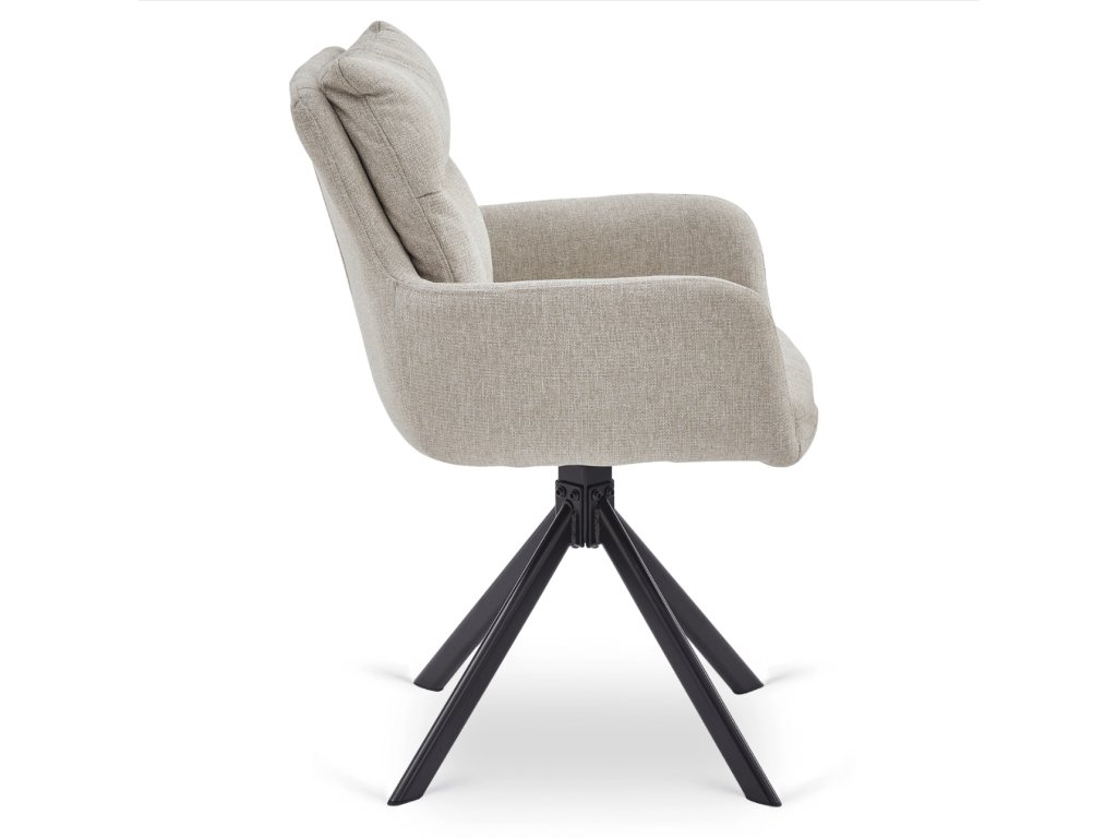 Sedací část má otočný mechanismus 90° na obě strany a přináší zcela nový rozměr pohodlí. Už žádné odsouvání od stolu – stačí se otočit a pohodlně vstát. Měkký polštář se silným čalouněním zajistí komfort i při delším sezení. Díky modernímu vzhledu a funkčnosti je židle ideální nejen do domácnosti, ale také do restaurací, hotelů či kaváren, kde hosté ocení kombinaci elegance a praktického využití.