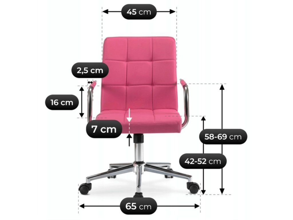 Čalounění z kvalitní ekokůže je jemné na dotek a zároveň odolné při každodenním používání. Růžová barva dodává židli univerzální a elegantní vzhled, který se hodí do různých stylů pokojů.