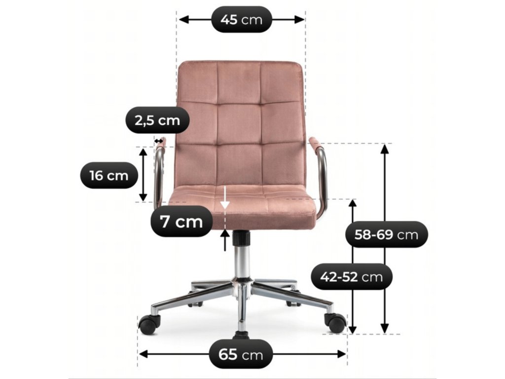 Čalounění z kvalitního velúru je jemné na dotek a zároveň odolné při každodenním používání. Růžová barva dodává židli univerzální a elegantní vzhled, který se hodí do různých stylů pokojů.