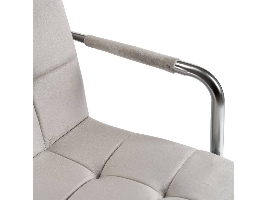Židle má pevnou kovovou konstrukci s chromovaným rámem a stabilní základnou. Povrch z velúru se snadno čistí – na běžnou údržbu stačí vlhký hadřík.