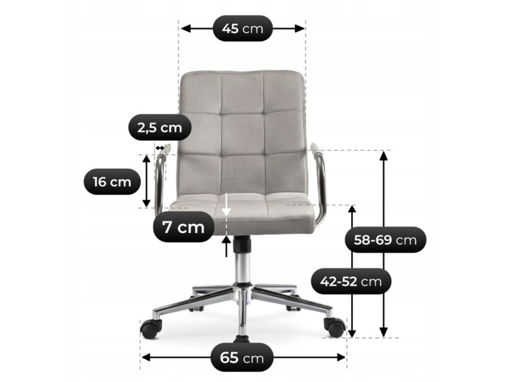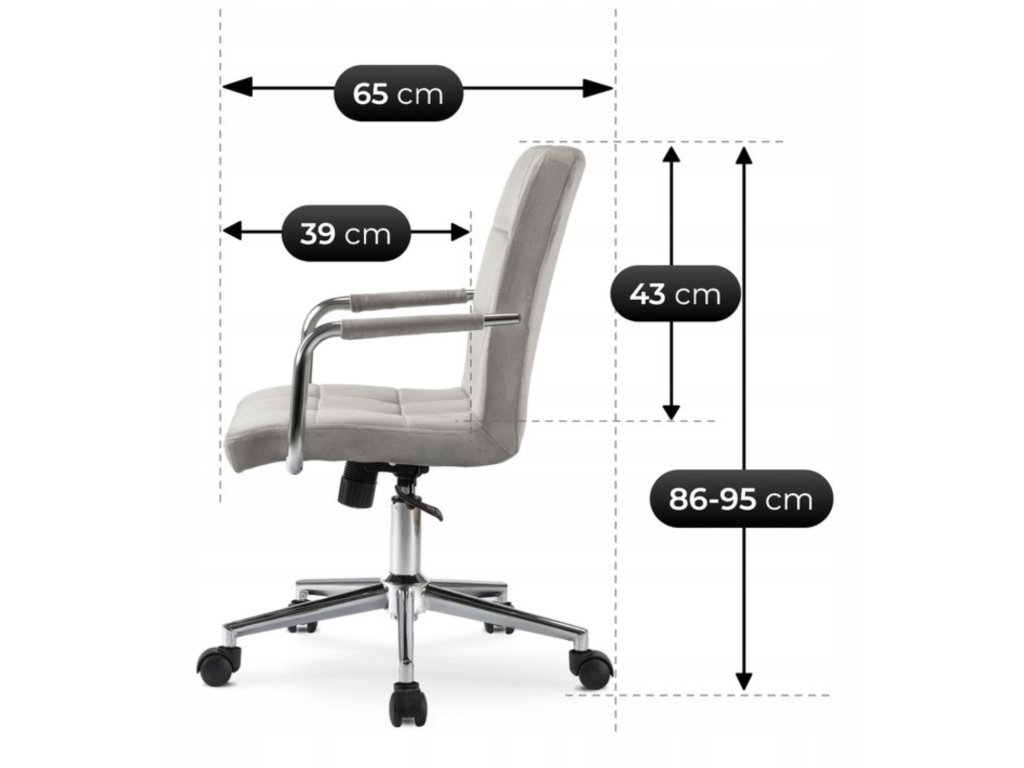 Čalounění z kvalitního velúru je jemné na dotek a zároveň odolné při každodenním používání. Šedá barva dodává židli univerzální a elegantní vzhled, který se hodí do různých stylů pokojů.