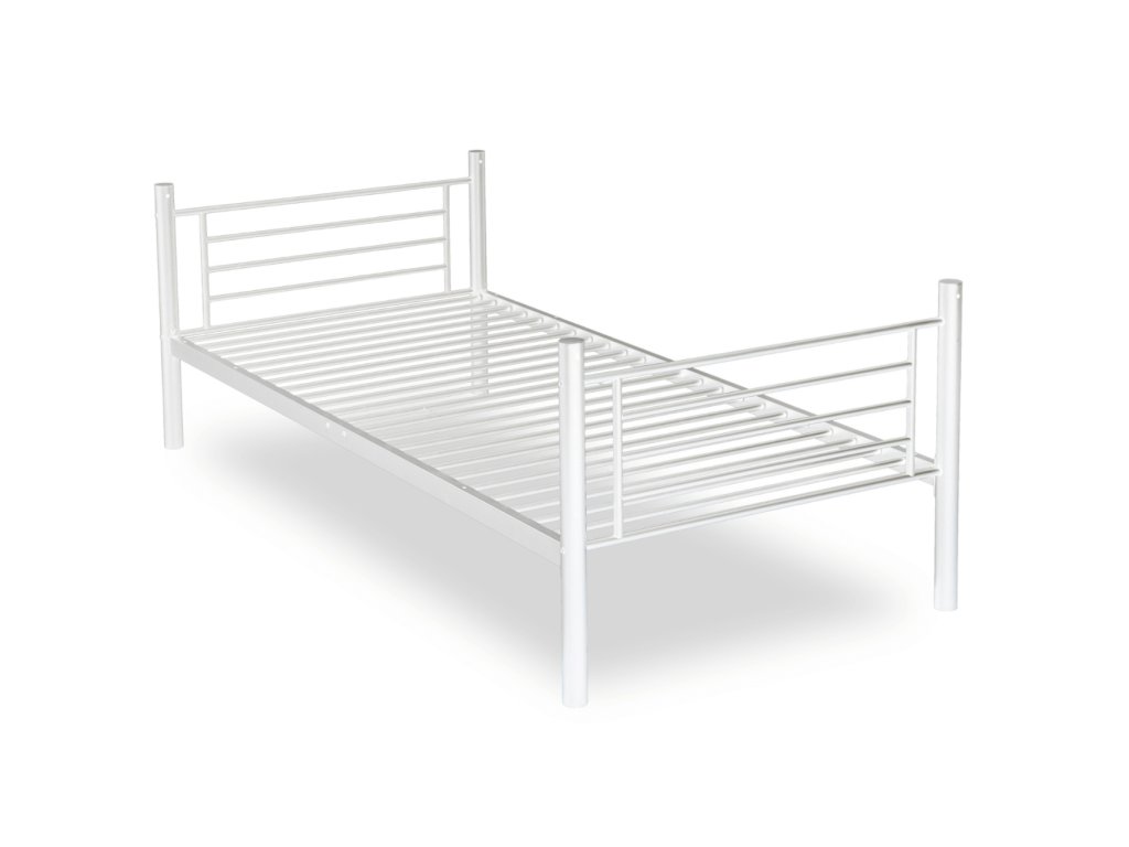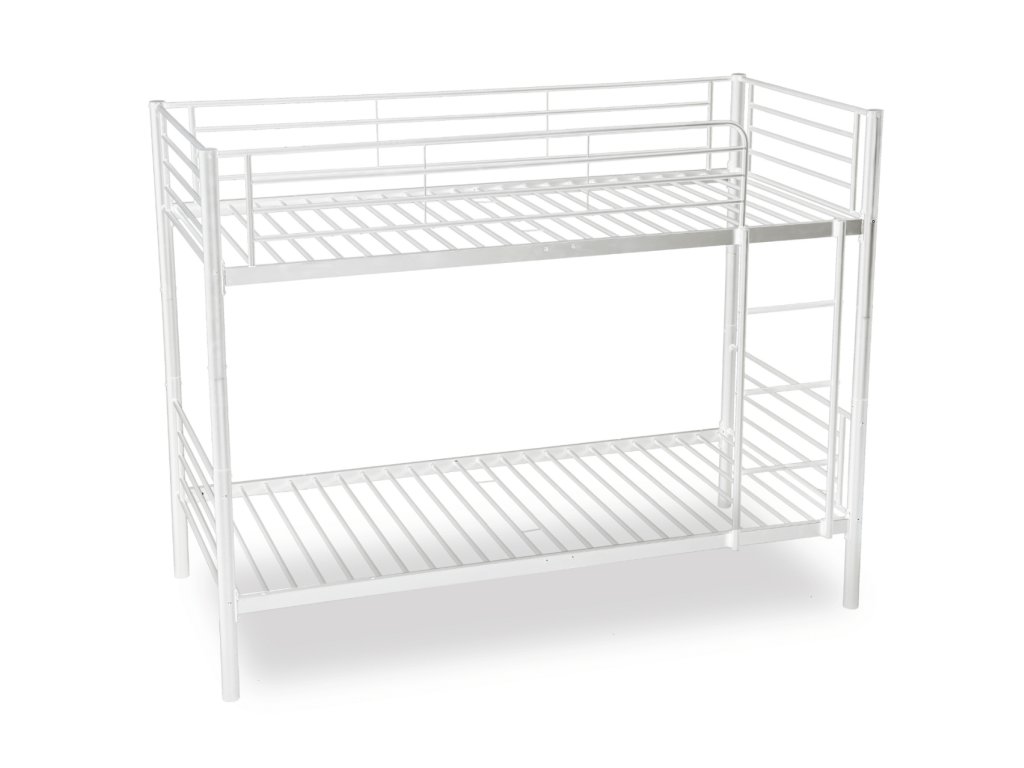 Konstrukce je vyrobená z kvalitního kovu v bílém provedení, díky čemu je pevná, stabilní a odolná proti každodennímu opotřebení. Povrchová úprava chrání rám před poškrábáním. Horní lůžko je vybavené bezpečnostními zábranami po celém obvodu.