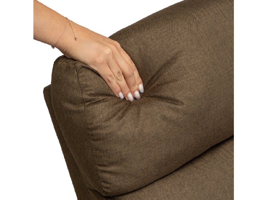 Kvalitní hnědá látka, pevná konstrukce a komfortní sezení