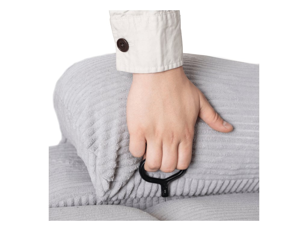 Pro sklopení opěradla zatáhněte za černou páčku umístěnou na pravé vnitřní straně sedáku. Křeslo se rozloží a opěrka nohou se zvedne. Pro návrat do původní polohy položte ruce na područky a posuňte je směrem k sobě – pokrčením kolen se opěrka nohou sklopí.