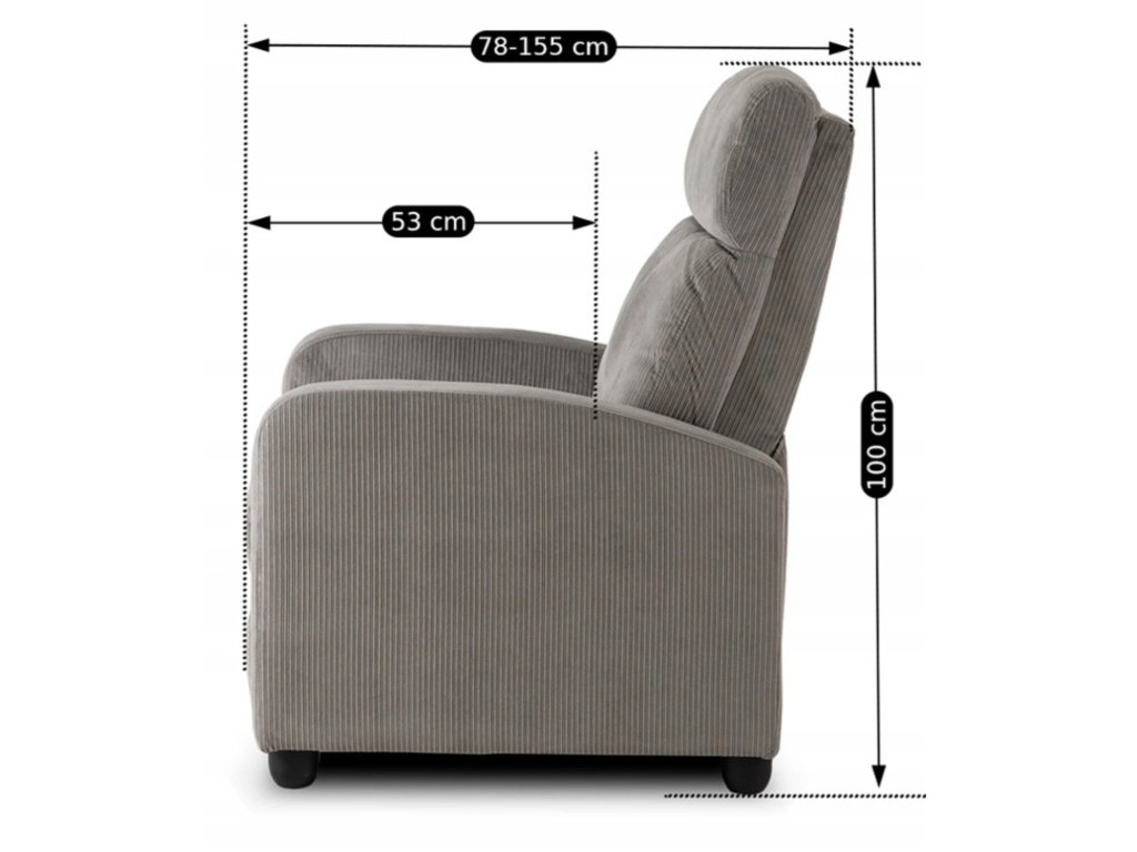 Polohovací křeslo s opěrkou nohou je navrženo tak, aby poskytovalo maximální pohodlí a styl. Je vybaveno mechanismem, který umožňuje nastavit různé polohy, od polosedu až po úplně vleže. Čalounění je z kvalitní látky příjemné na dotek, vyplněné odolnou měkkou pěnou a odolné vůči žmolkování a oděru. Křeslo má kovovou konstrukci, která zaručuje stabilitu a maximální nosnost až 125 kg.