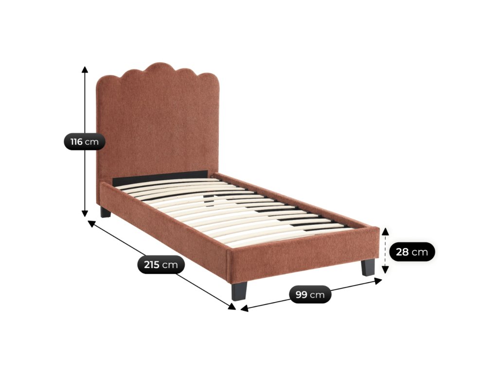 Postel má měkký textilní povrch, který je příjemný na dotek a dodává pokoji hřejivý, útulný charakter. Tehlový odstín působí elegantně, trendy a snadno se kombinuje s dřevěným nábytkem, neutrálními barvami i pastelovými tóny.