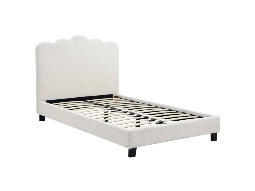 Měkká buklé látka je příjemná na dotek, odolná při každodenním používání a dodává pokoji teplo už na první pohled. Jemná krémová barva se skvěle hodí do pastelových odstínů, minimalistických interiérů i moderních studentských pokojů. Vysoké čalouněné čelo poskytuje pohodlí při čtení, učení i večerním sledování mobilu.