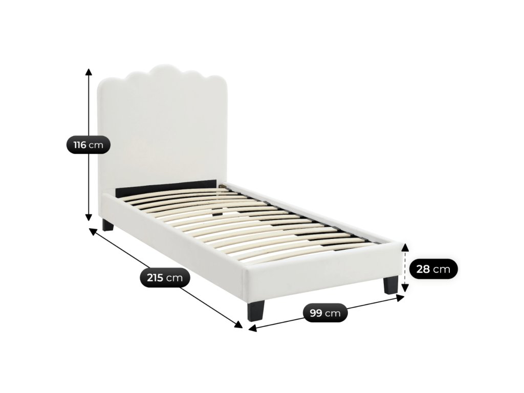 Měkký velur je hladký na dotek, působí luxusně a vytváří pocit domácího pohodlí. Krémový odstín krásně doplňuje světlé, pastelové i tmavší interiéry. Vysoké čalouněné čelo poskytuje komfort při čtení, studiu nebo večerním sledování mobilu.