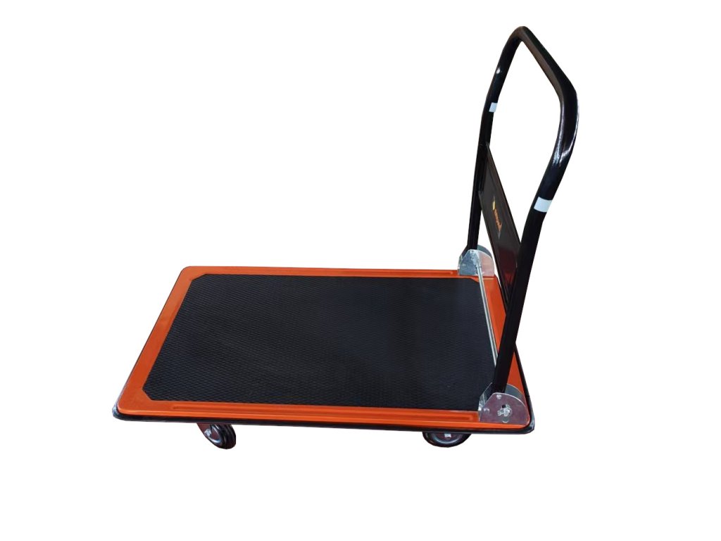 Vozík funguje na principu pevné kovové platformy s kolečky, která umožňuje plynulý přesun břemen do 150 kg bez zvedání. Sklápěcí rukojeť zajišťuje pohodlné ovládání a rychlé složení po použití.