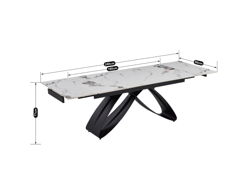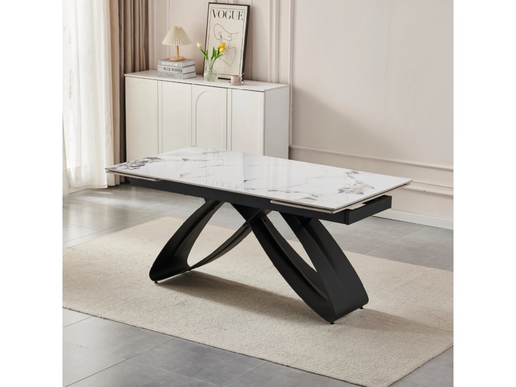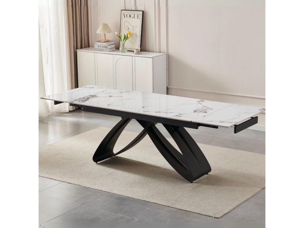 Rozkládací stůl Luigi 160 - 240 cm bílý mramor černý