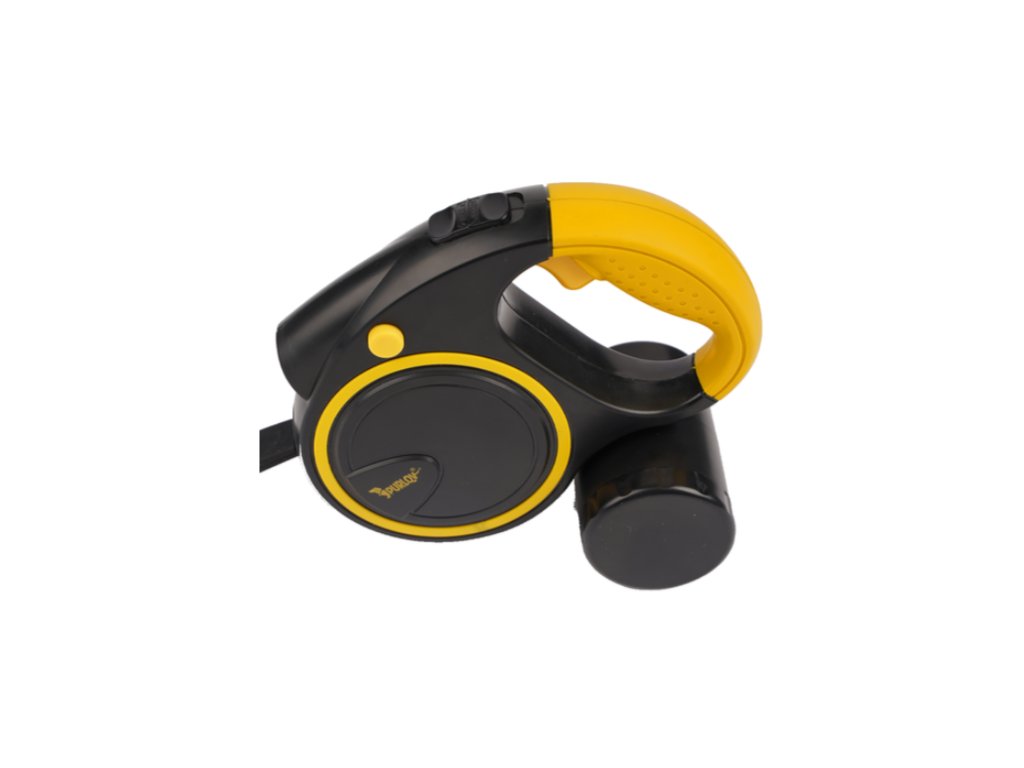 Pětimetrová navíjecí páska poskytuje psovi dostatek prostoru pro pohyb. Pevný kovový hák s kvalitní karabinou zajišťuje spolehlivé uchycení. Součástí vodítka je také integrovaný dávkovač sáčků na exkrementy a praktický zamykací mechanismus, který usnadňuje každodenní používání v městském i přírodním prostředí.