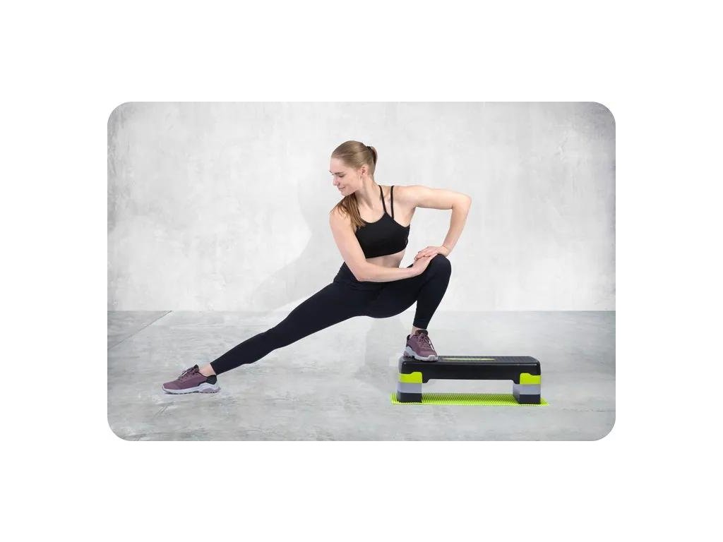 V balení se nachází také protiskluzová podložka. Podložka zvyšuje bezpečnost během cvičení. Schod se umisťuje přímo na podložku, tím se zabrání jeho smyku po podlaze, to umožňuje bezpečné zapírání se o něj bez rizika posunu, což zlepšuje stabilitu a efektivitu cvičební aktivity.