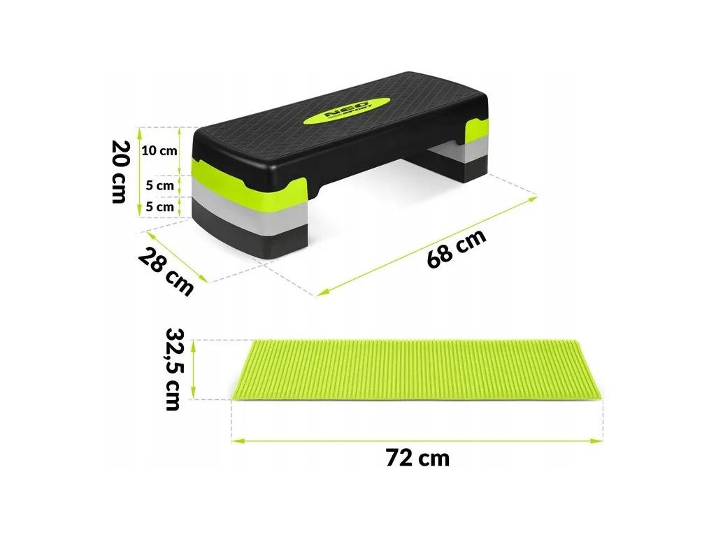 Schod na cvičení zelený, rozměry: 28 x 68 x 20 cm.