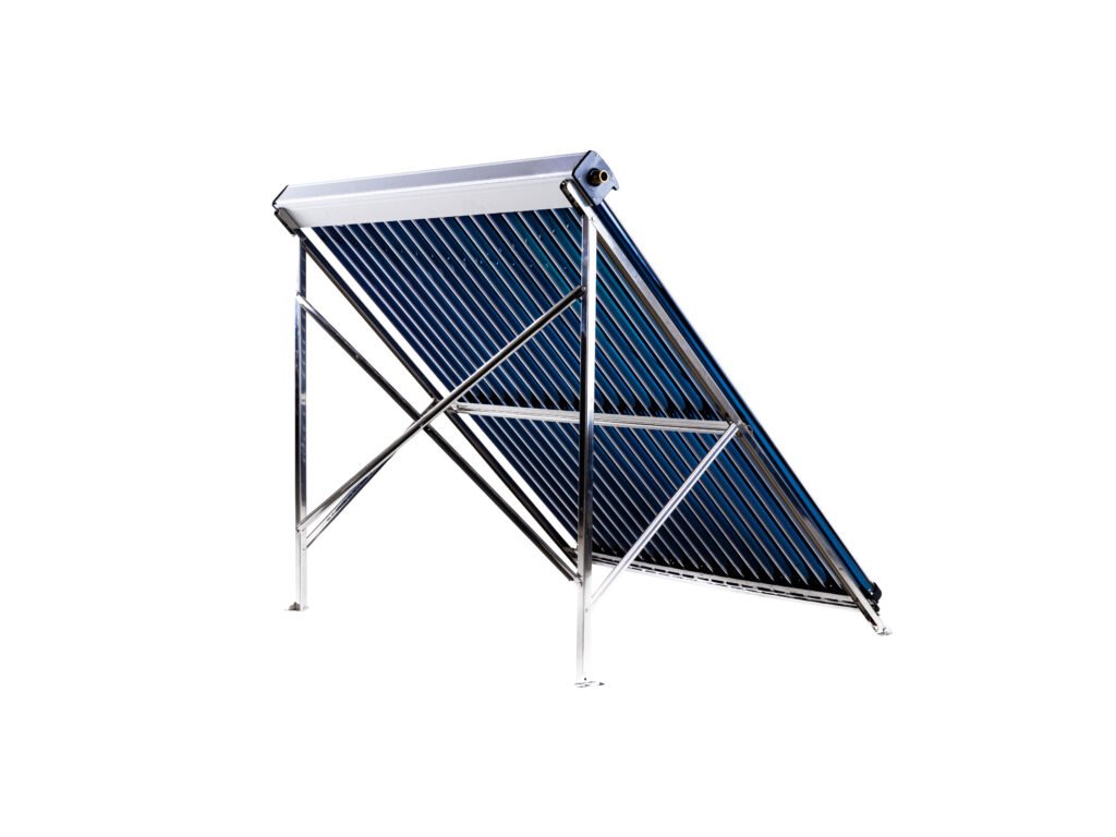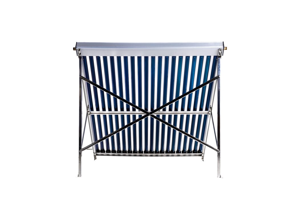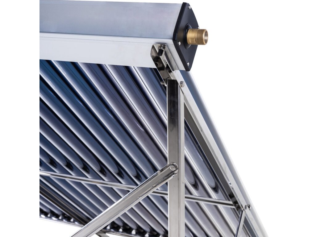 Solární kolektor bez zásobníku, šířka: 163 cm, délka: 196 cm, počet vakuových trubic: 20, rám: nerezová ocel, velikost trubice: 58 mm x 1800 mm, úhel sklonu: 45°