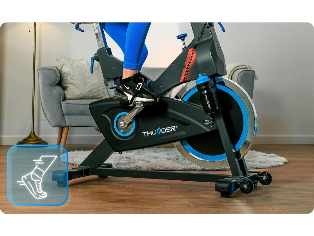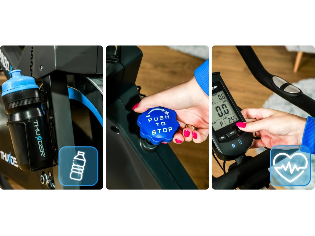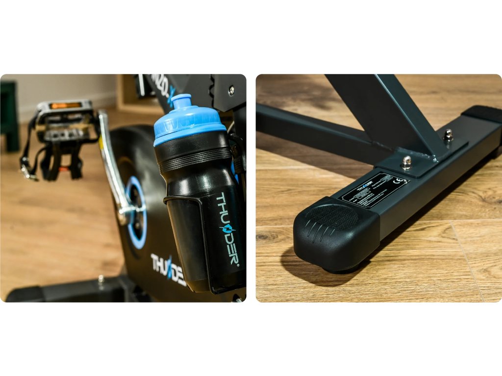 - Držák na láhev a láhev THUNDER® – Hydratace během tréninku je důležitá. SPINZO-X má zabudovaný držák na láhev, díky kterému budete mít vodu vždy po ruce.