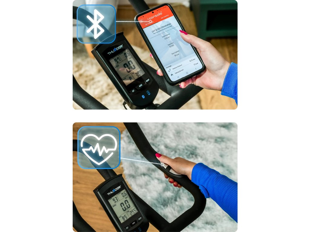 - Senzory srdečního tepu na řidítkách – Sledujte svou tepovou frekvenci a optimalizujte intenzitu tréninku podle svých cílů.