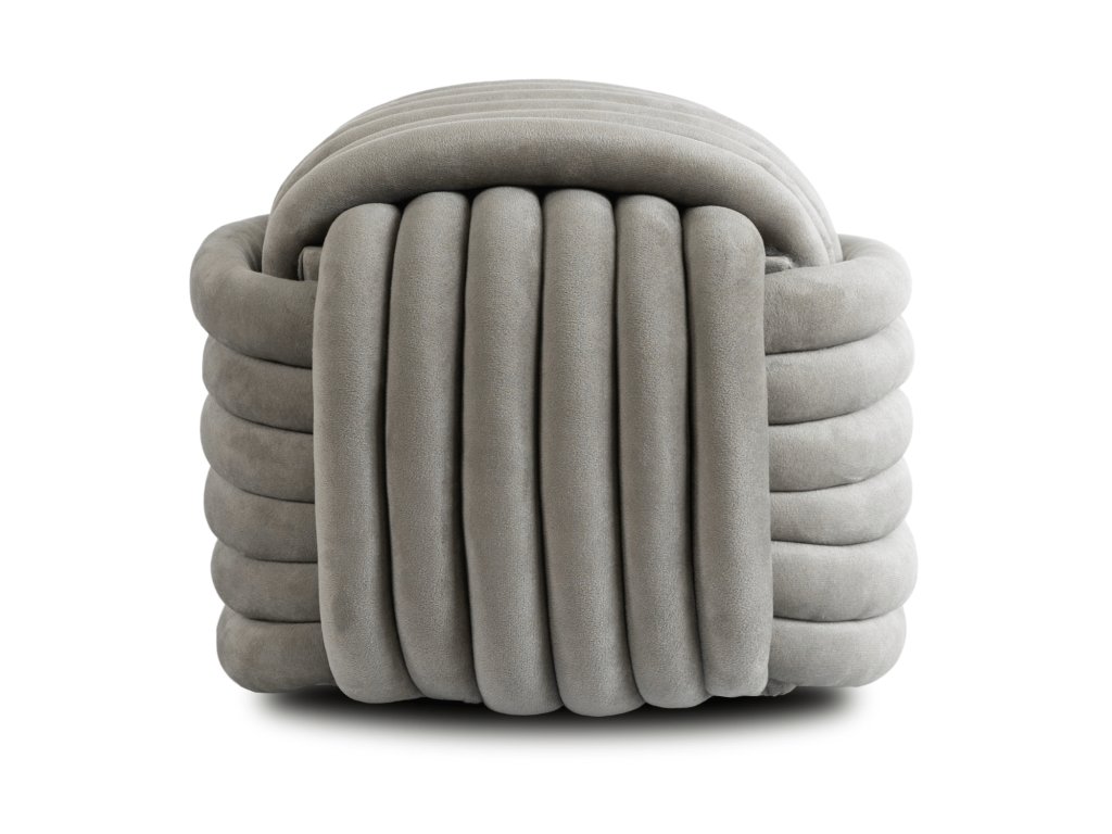 Taburetka je čalouněná měkkou velúrovou látkou v šedé barvě, která je příjemná na dotek a odolná při používání. Struktura látky dodává povrchu hřejivý a elegantní vzhled.
